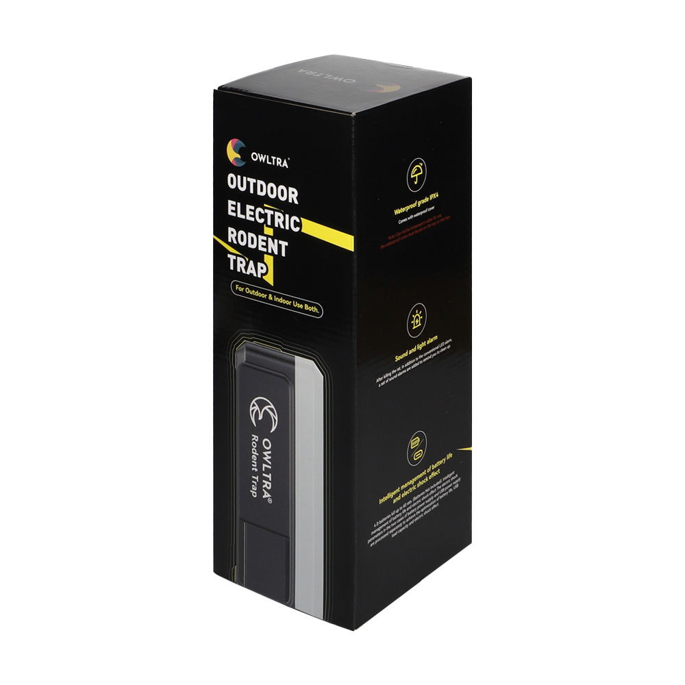Den elektriske rottefælde fra Owltra har en effektiv og velfungerende teknologi til at tage sig af rotterne. Når en gnaver tiltrækkes af lokkemaden i fælden, aktiveres fældens sensorer. Når rotten samtidig rører ved to metalplader, leveres et kort og kraftigt elektrisk stød med en spænding på 6000-9000 volt, hvilket effektivt og humant afliver rotten.